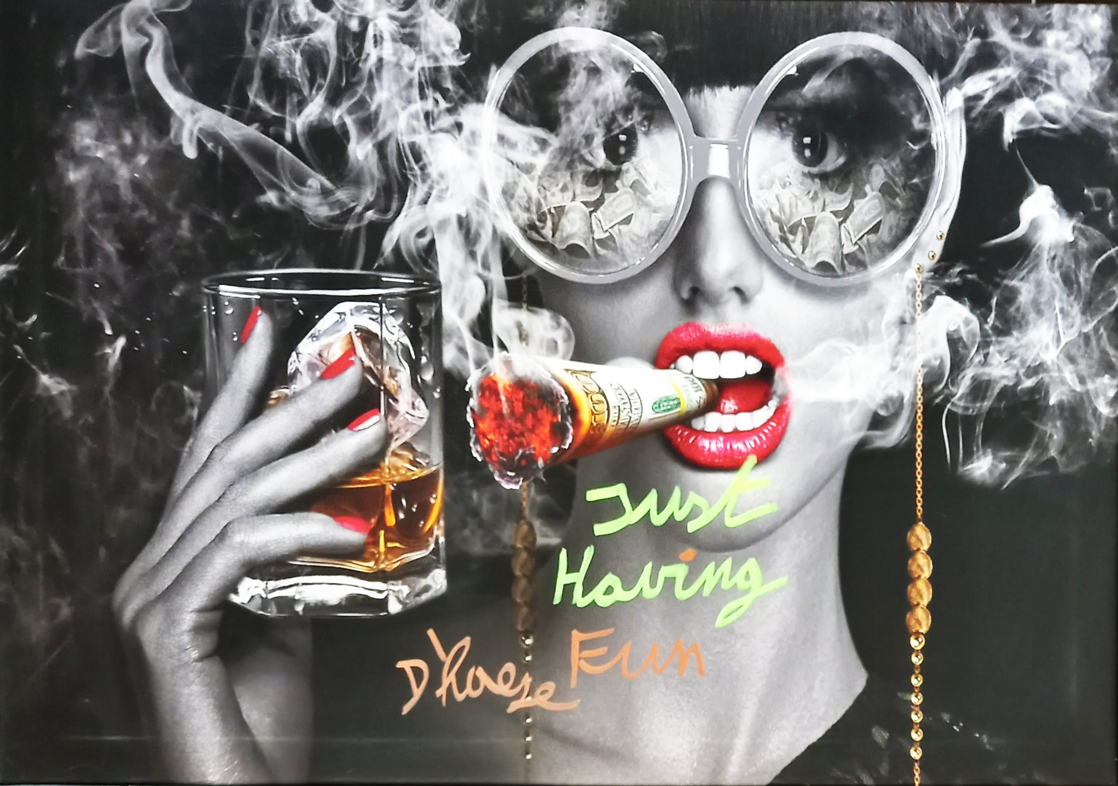 Print op doek uit 2022 met handgeschreven tekst, handgesigneerd